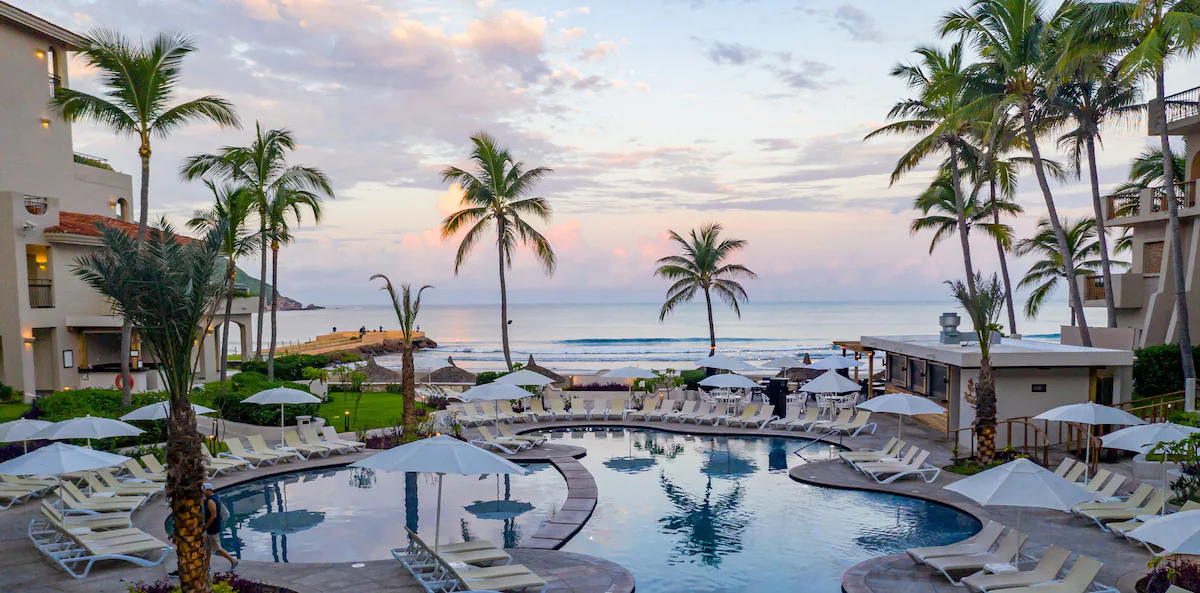Pueblo Bonito Mazatlán is a charming, all-suite beachfront resort that blends traditional Mexican style with modern comfort. Located in the Golden Zone, it offers direct access to a swimmable beach and stunning views of the Pacific. The resort’s suites feature kitchenettes, private balconies, and warm, coastal décor—ideal for both families and couples. Guests can relax by two oceanfront pools, enjoy a variety of restaurants and bars, or take part in daily activities and entertainment. With its recently renovated spaces, friendly service, and prime location near shops and nightlife, Pueblo Bonito Mazatlán offers a balanced mix of relaxation, culture, and convenience in one of Mexico’s most authentic beach destinations.